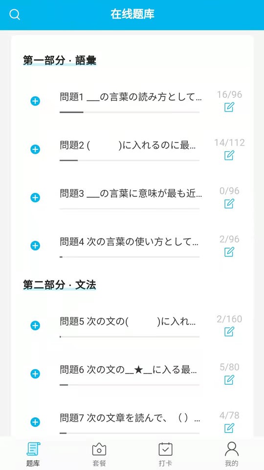 1. 单词模拟部分提供N1九百题、N2七百二十题的冲刺练习;