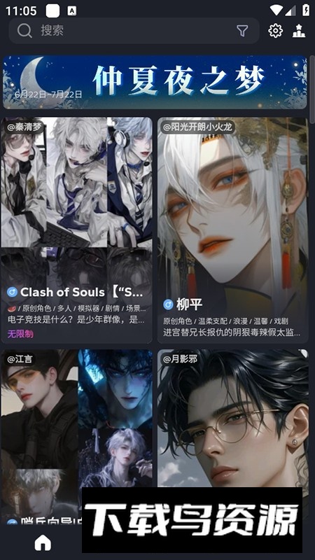 2、在轻语模型中,选择那些带有电话图标标识的角色卡面,用户也可以在作者页面留意含有此图标的卡片;