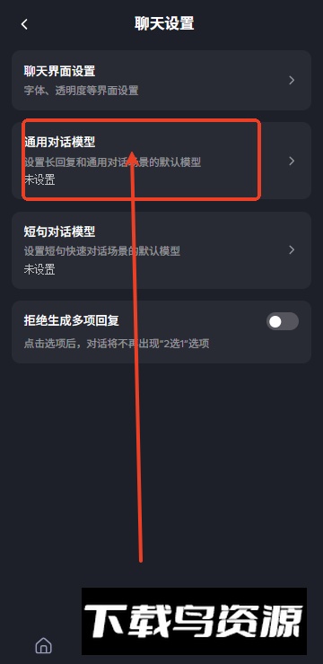 3、在聊天设置里,找到并点击模型切换功能;