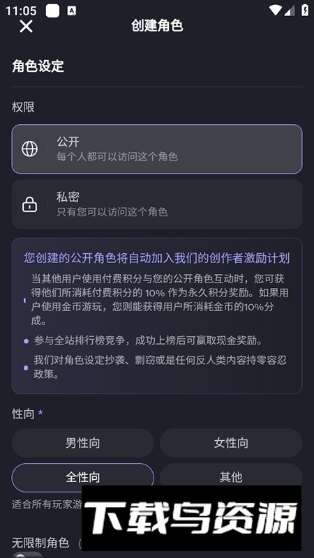 1. 角色定制自由:用户可以随意设定角色的性别、外貌、性格、背景故事以及擅长领域,创造出独一无二的虚拟伙伴。