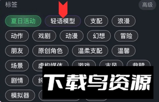 1、进入角色选择界面,找到并点击【轻语模型标签】;
