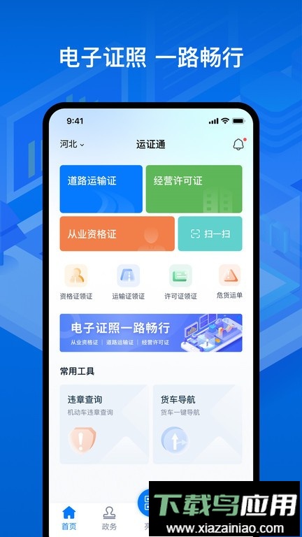 3、实现在线申领道路运输电子证照并快速亮证;
