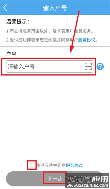 输入用电户号,勾选同意相关服务协议,点击下一步即可完成缴费。