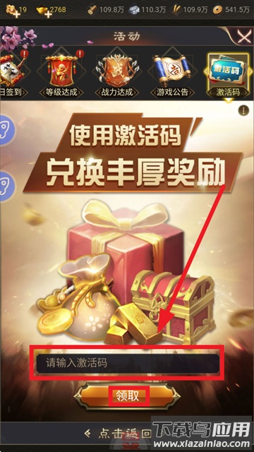 在输入框中键入有效的激活码,点击领取按钮即可获得奖励。