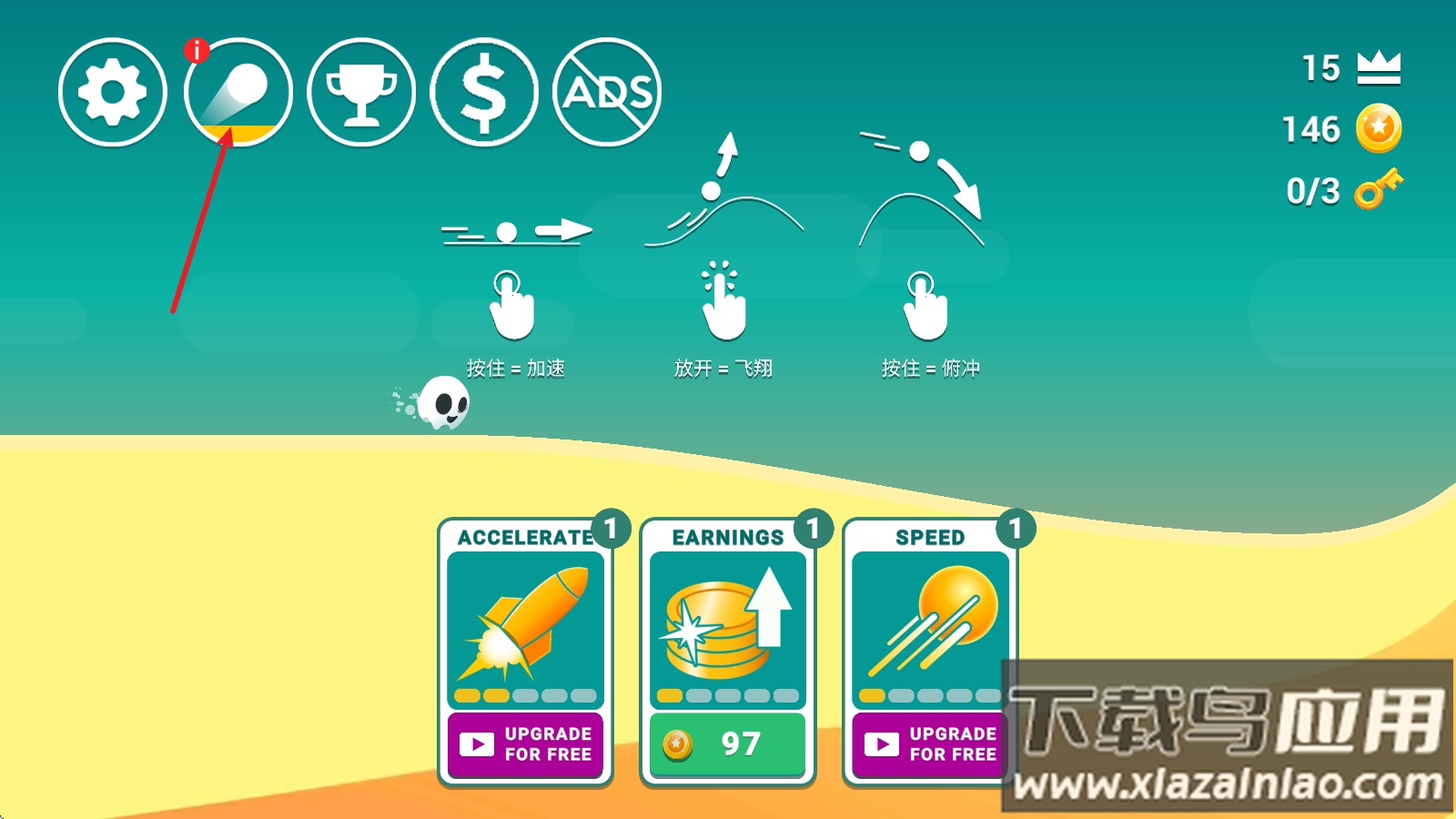 5、玩家需要实现平稳着陆来赚取分数,飞行高度越高,停稳的难度就越大,一旦落地不稳游戏便会终止,此时可选择复活继续。