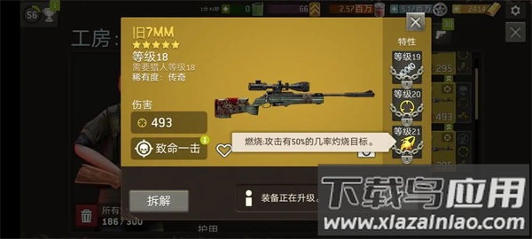 燃烧是猎人武器的特色技能,后期极为强大。这是按比例扣血的技能,触发概率可受幸运提升。