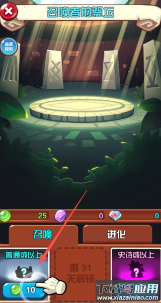 1、使用10个绿色道具进行普通召唤,有机会获得全新怪物。通过持续召唤来不断壮大你的怪物收藏。