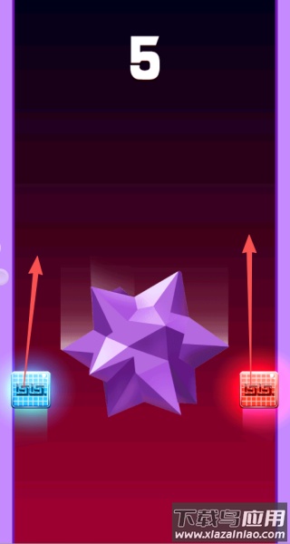 1、点击屏幕让两个方块合并,然后引导它们一起安全通过前方的障碍。