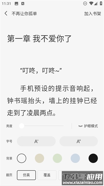 5、在阅读页面中,你还能按需调整字体大小、背景色彩和翻页方式等设置。