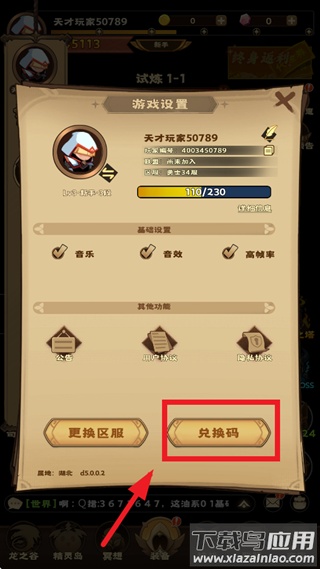 在游戏设置界面中找到并点击兑换码入口。