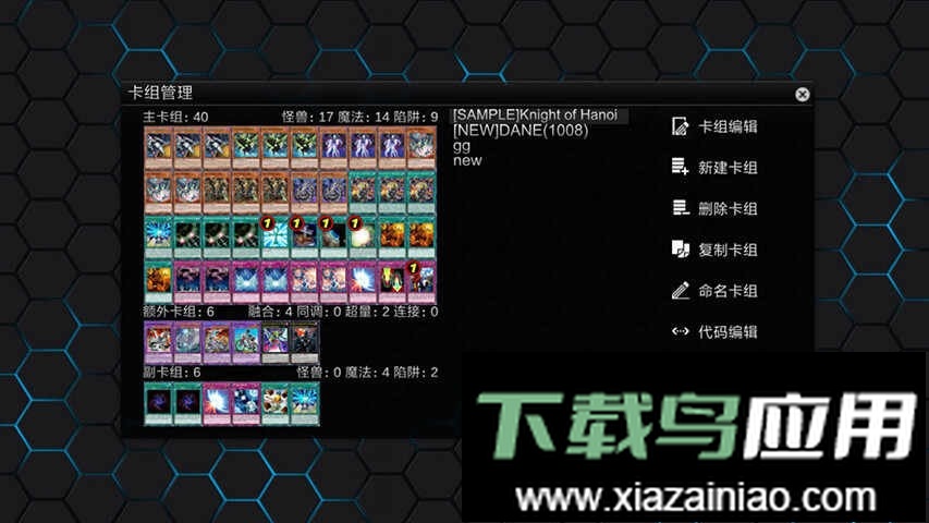 4、多功能卡组编辑:在庞大的卡牌库中自由构建卡组,支持多种规则限制;通过文本、属性或名称搜索卡片能极大提升查找效率;