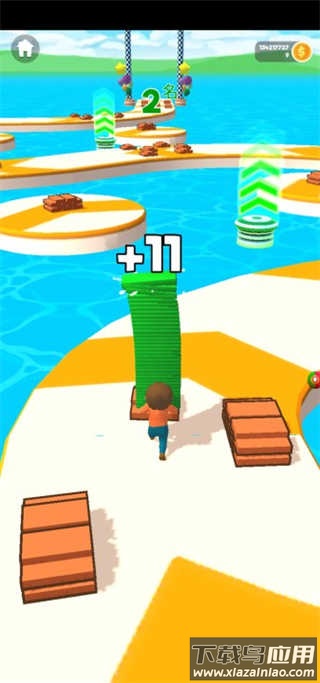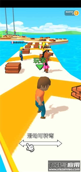 这是一款操作简单却充满趣味的休闲闯关游戏。玩家只需左右滑动即可控制角色移动,在不断向前奔跑的过程中,你需要收集散落在路上的木板,并用这些木板在合适的时机搭建捷径桥梁,从而超越其他对手,以更快的速度冲向终点。