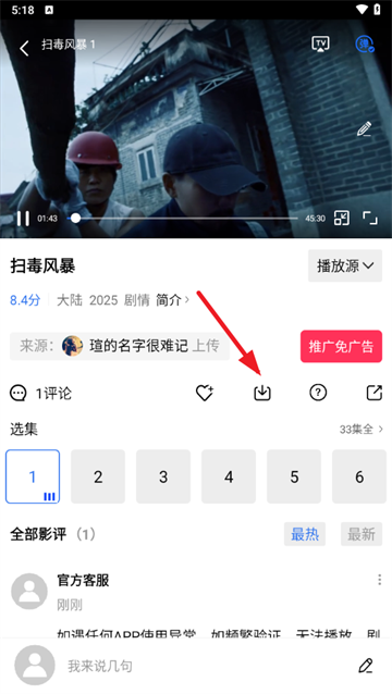 2、可以点击下载按钮,将视频缓存到本地观看