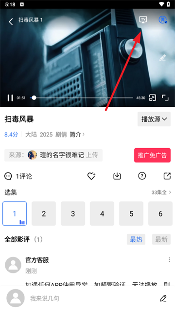 3、如果想在大屏电视上观看,可以点击投屏功能键