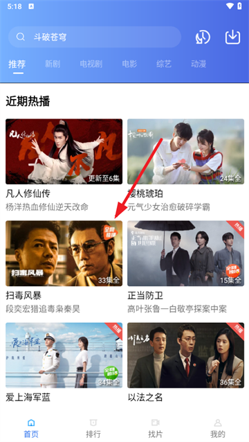 1、从本站下载安装后打开应用,找到你想看的节目,比如最近的热门剧集“扫毒风暴”,点击播放