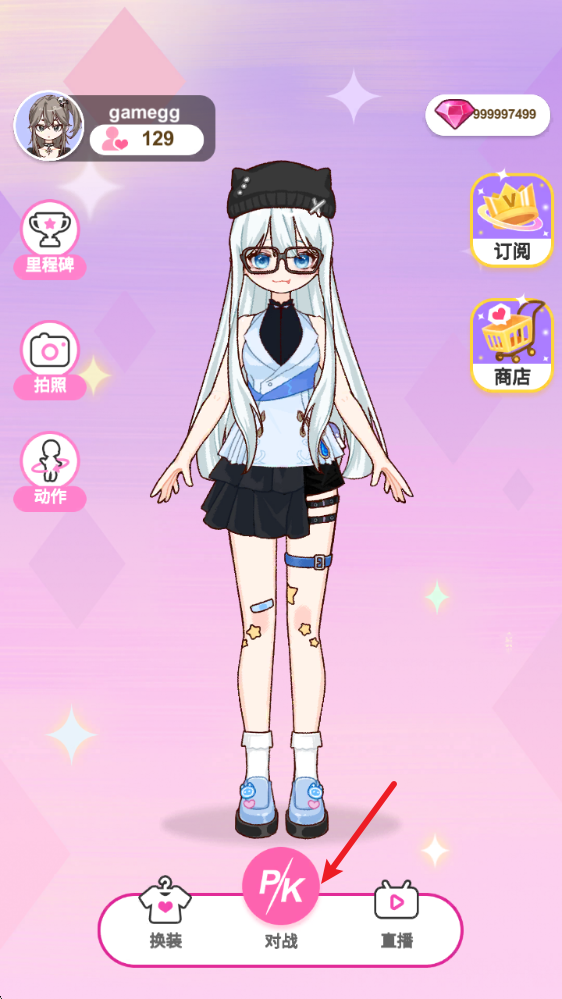 6、返回游戏主界面,就能看到已经打扮一新的角色了。游戏还提供了PK比赛功能,可以展示你的设计。
