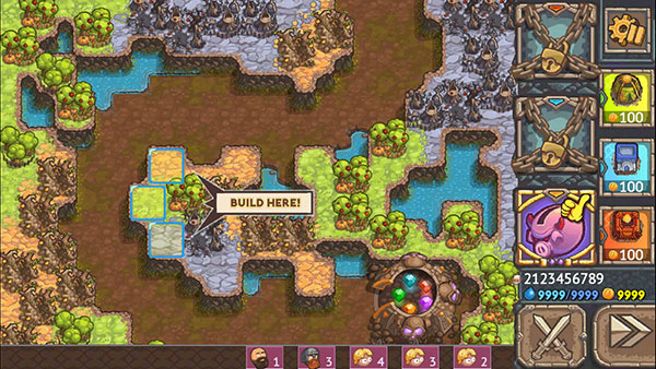 2、点击战场上的方格空位,能够建造不同种类的防御塔。