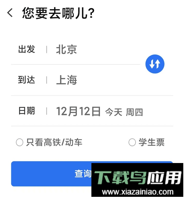 打开铁路12306应用;