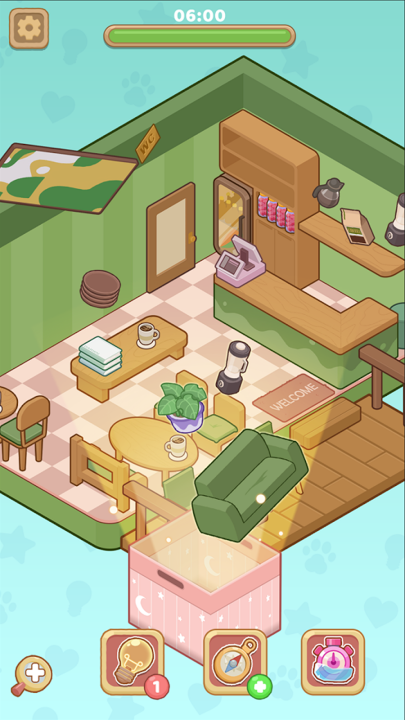 箱子打开后,会随机出现各式家具与小物件,等待你拾取使用。