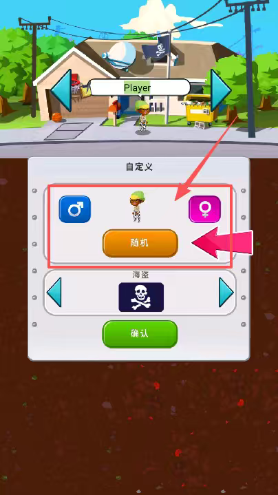 1、进入卡通风格场景与角色界面,点击橙色随机键或绿色确认键选择角色,过程简单直观。