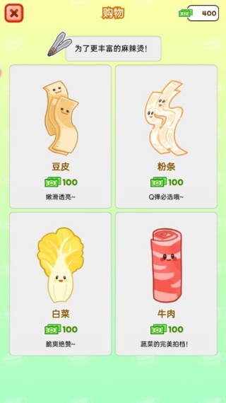2、三十多种新鲜食材供你组合,创造出独家麻辣烫配方,你的厨房完全由你掌控。