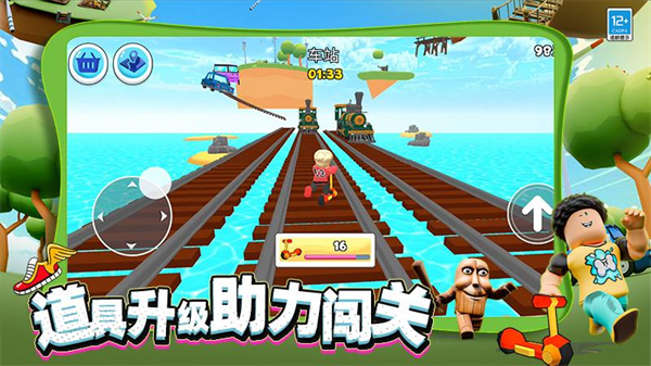 3、沿途收集金币与能量碎片,积攒起来可以用于解锁新角色、购置外观或是提升基础能力,比如跳得更高、跑得更快。