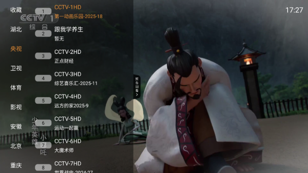 2. 在央视频道列表中,找到并点击“CCTV1 HD”即可开始观看。
