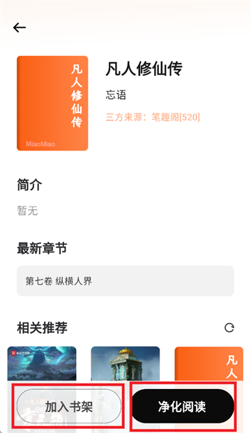 进入详情页后可以收藏本书,或点击净化阅读按钮