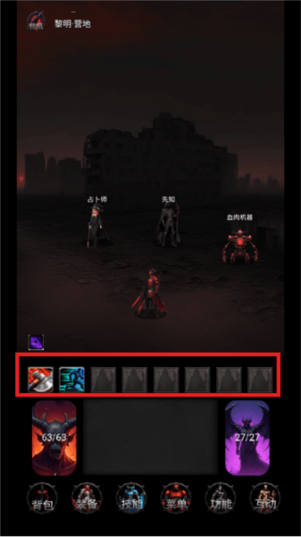 4.界面下方会显示已学会的技能,角色生命值与魔法值则以两个人物图标旁的条状形式呈现。