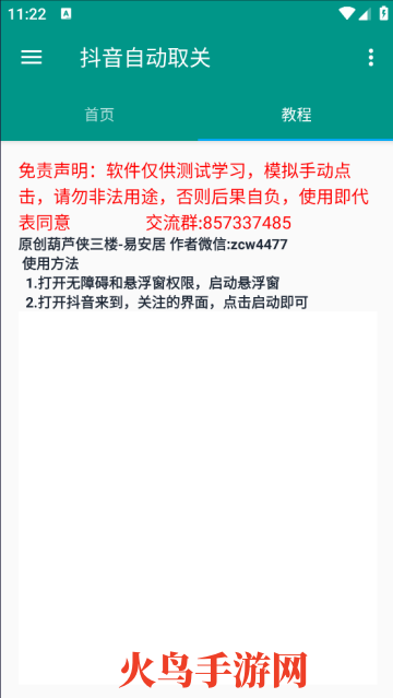 这款取关应用由葫芦侠平台的开发者独立制作,专门用于抖音平台的全自动取消关注操作。