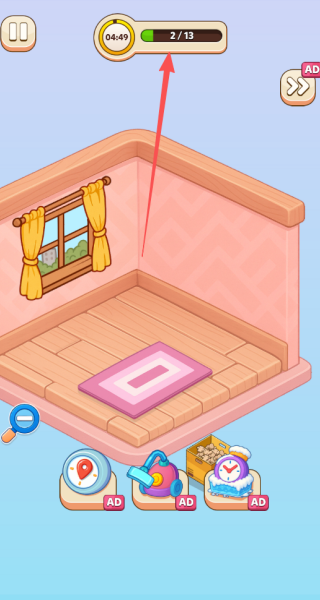 3、随时注意屏幕顶部的进度条,根据进度合理规划装修顺序,确保在限定时间内完成所有任务。
