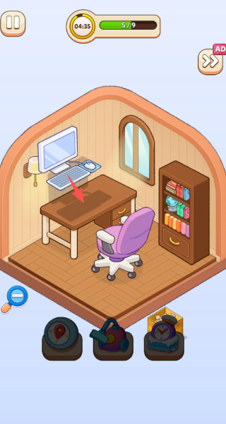 你需要从收纳盒中挑选家具和装饰品,根据房间的布局将它们安放在合适位置。每个房间的结构与物品都独具特色,仔细观察并合理规划,才能创造出既整洁又富有个性的环境。整理时,使用吸尘器等工具可以加快进度,记得在倒计时结束前完成所有布置,享受从凌乱走向温馨的治愈过程。