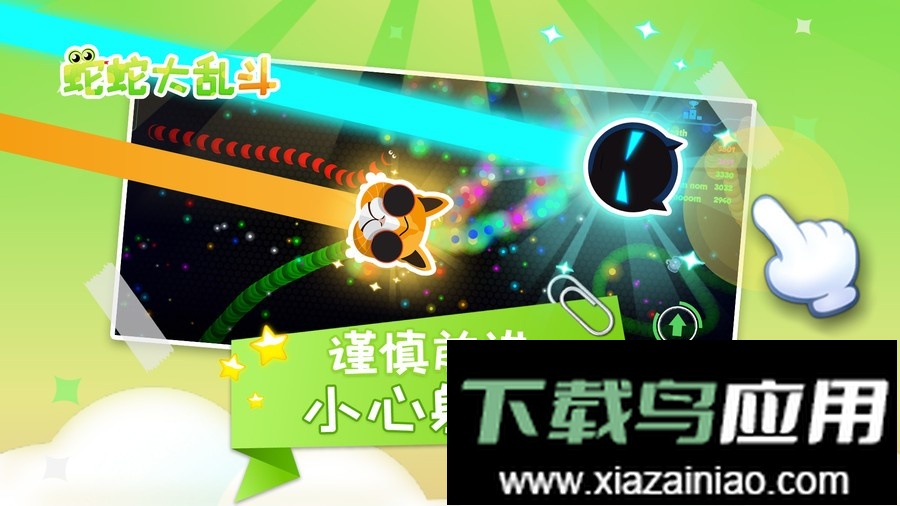 这是一款休闲益智手游,操作简单易于上手。在对局中,你需要灵活操控蛇身移动,与其他玩家展开对抗;通过快速转弯等技巧击溃对手,并拾取他们掉落的能量来增大自身体积,从而累积更高分数,成为战场中最强大的蛇。
