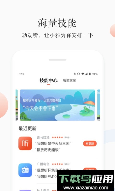 这款由喜马拉雅推出的智能音箱,包括小雅AI音箱与小雅Nano型号,整合了智能语音对话、完整的喜马拉雅音频库以及天气查询、闹钟设置、情感交流等多种实用功能。其麦克风阵列支持约五米范围内的远场语音操控;用户能够设定个性化闹钟,收藏喜爱的节目,并借助家居联动模块实现更智慧的生活体验。小雅AI图书馆则专注于有声内容服务,提供语音点播、扫码听书、智能推荐及儿童专属内容,同时兼具音乐播放、视频通话与智能家居管理能力。开始探索前,请确保音箱已连接网络并保持在线状态。