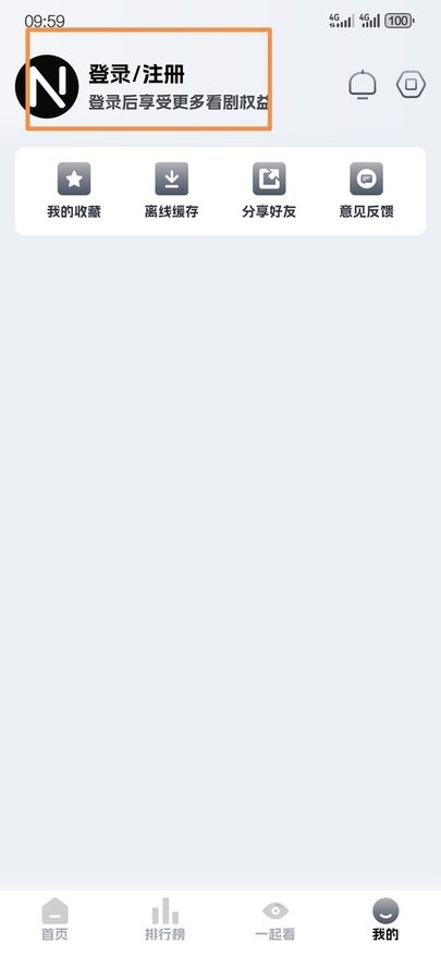 2. 进入【我的】界面,点击【登录/注册】按钮;