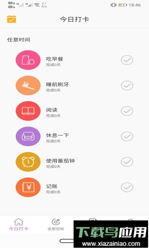 1. 自由设定各项任务目标,每天按要求完成打卡记录;