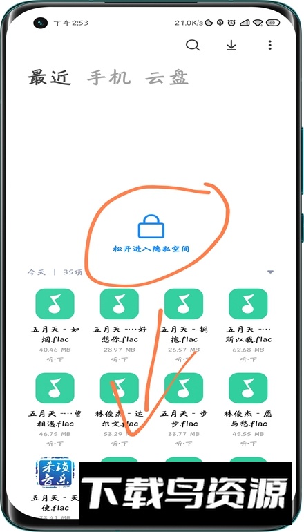 若需查看已隐藏的文件,请在文件管理首页向下滑动,直到出现松开进入隐私空间的提示后松开手指,输入密码即可访问。