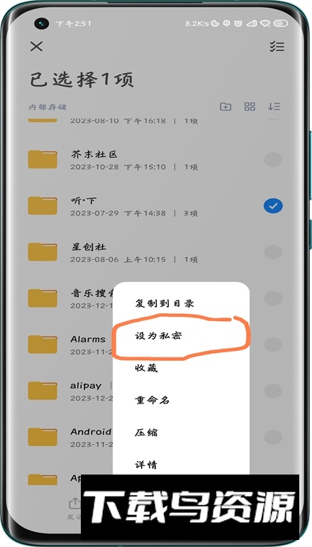 接着在弹出页面内点击设为私密选项即可完成隐藏。