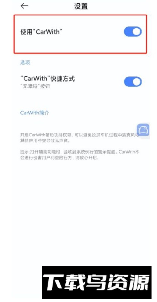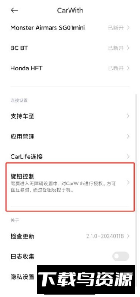 2.开启路径位于CarWith应用内的旋钮控制设置项。