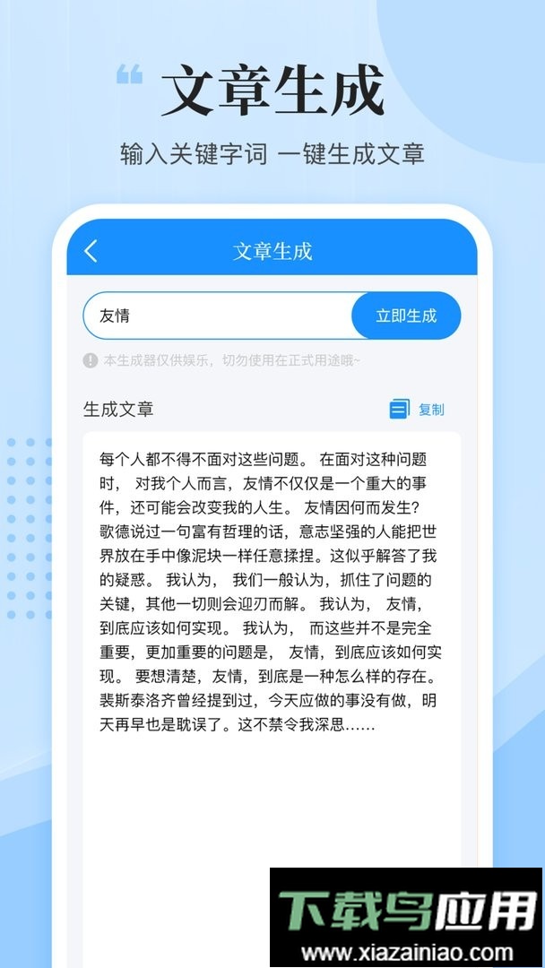 【文章生成】输入关键词,即可一键生成完整文章。