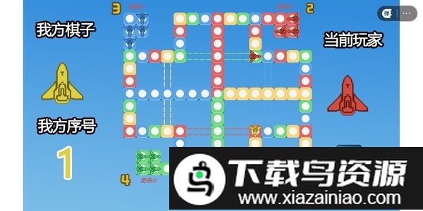 2、四人对战的界面十分清爽,沿用经典的飞行棋棋盘,通过干扰对手路线来争取优势;