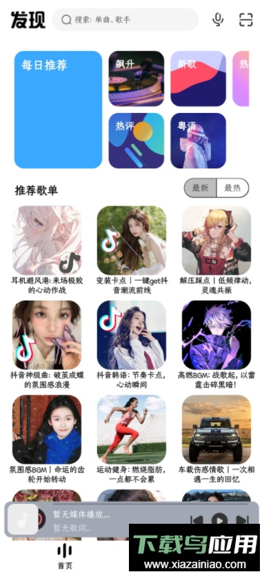 持续更新最新最热的歌曲资源;提供粤语歌曲、抖音热歌、经典老歌、周杰伦全集、韩日欧美音乐等多样选择。