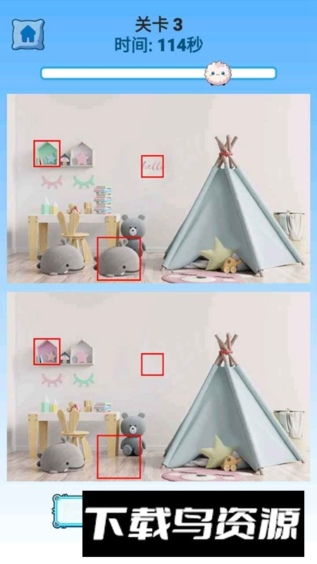 3.提示功能设计巧妙:遇到困难时可以使用次数有限的提示;系统会高亮标示出尚未被找到的差异区域,帮助玩家顺利推进关卡;