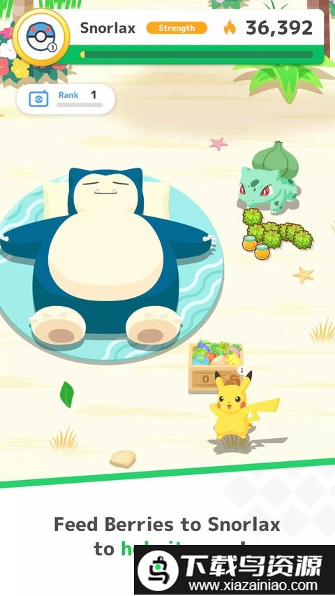 把卡比兽培育得又大又壮;与你成为伙伴的宝可梦会送来浆果,卡比兽成长得越充分,就越有机会遇见睡眠姿态稀有的宝可梦;好好休息,努力培养吧。