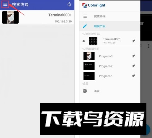 1. 点击搜索终端界面左上角的菜单图标,选择编辑节目。