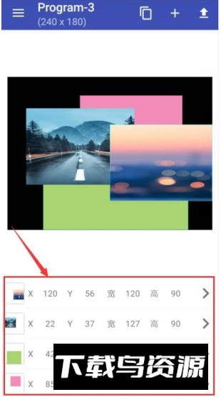① 单个窗口可添加多项内容,按添加顺序播放;选中窗口后点击右上角图标,选择内容可查看全部项目或快速切换编辑。