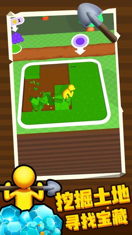 这是一款充满趣味的放置经营游戏,比拼的是挖土寻宝的本领;玩家可以消耗货币雇佣工人来协助挖掘,提高整体工作效率。在挖掘过程中,有机会获得宝石、钻石等特殊货币,用于在商店中购买实用道具或宠物伙伴;玩家需要扮演宝藏探寻者的角色,持续向下挖掘目标土地,寻找那些深埋在土壤之下的珍贵宝藏。