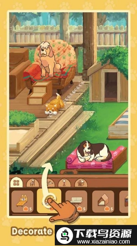 3、完成各类任务来为房屋添置家具,增加狗狗喜爱的玩具,为它们营造一个舒适安逸的生活环境。