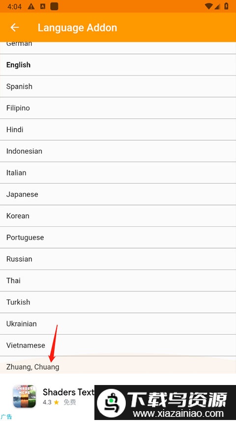 在语言列表中继续向下滑动,选择“简体中文”即可。