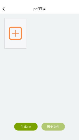 2、在PDF扫描页面点击“+”号来选择PDF文件,接着进行PDF生成操作,此外还能查看历史文件。